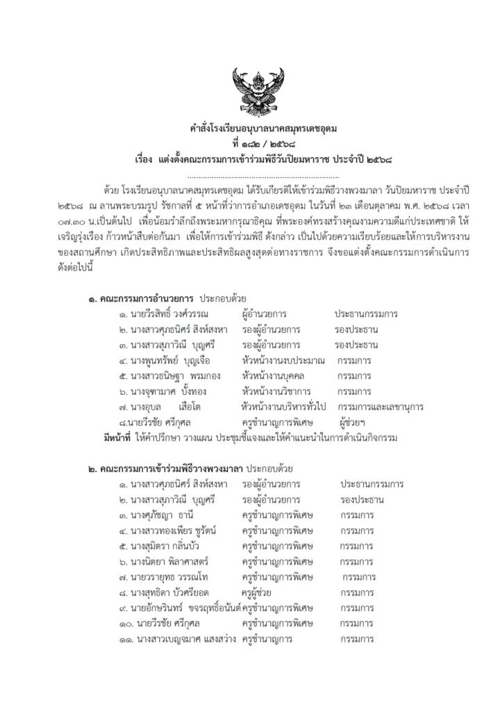 จากการประชุม10-10-68 ให้หมุนเวียนในวันที่23ตุลาคม ของทุกปี ผอได้กล่าวไว้